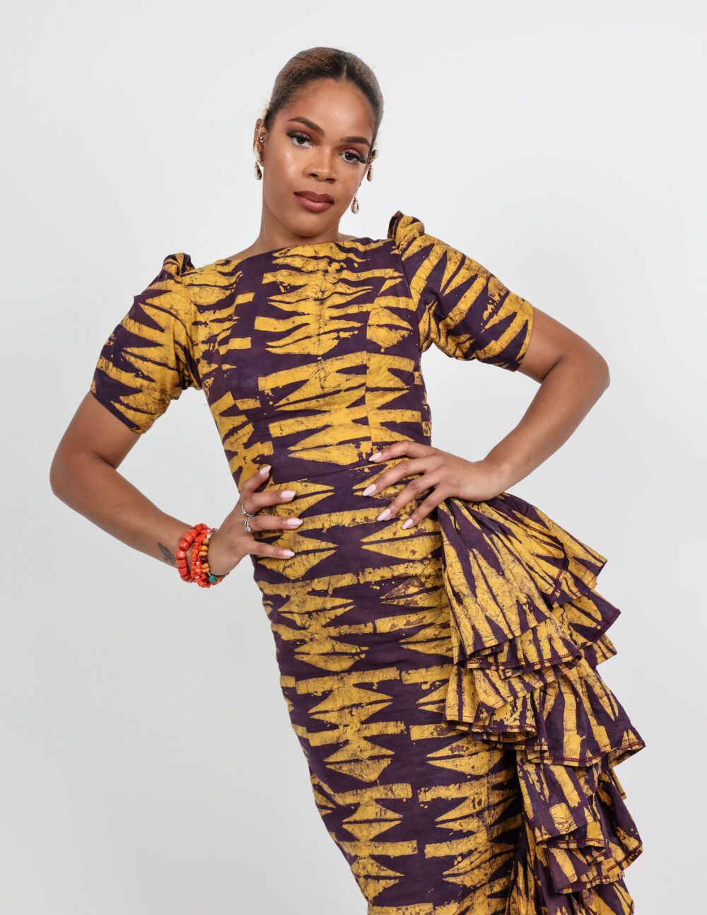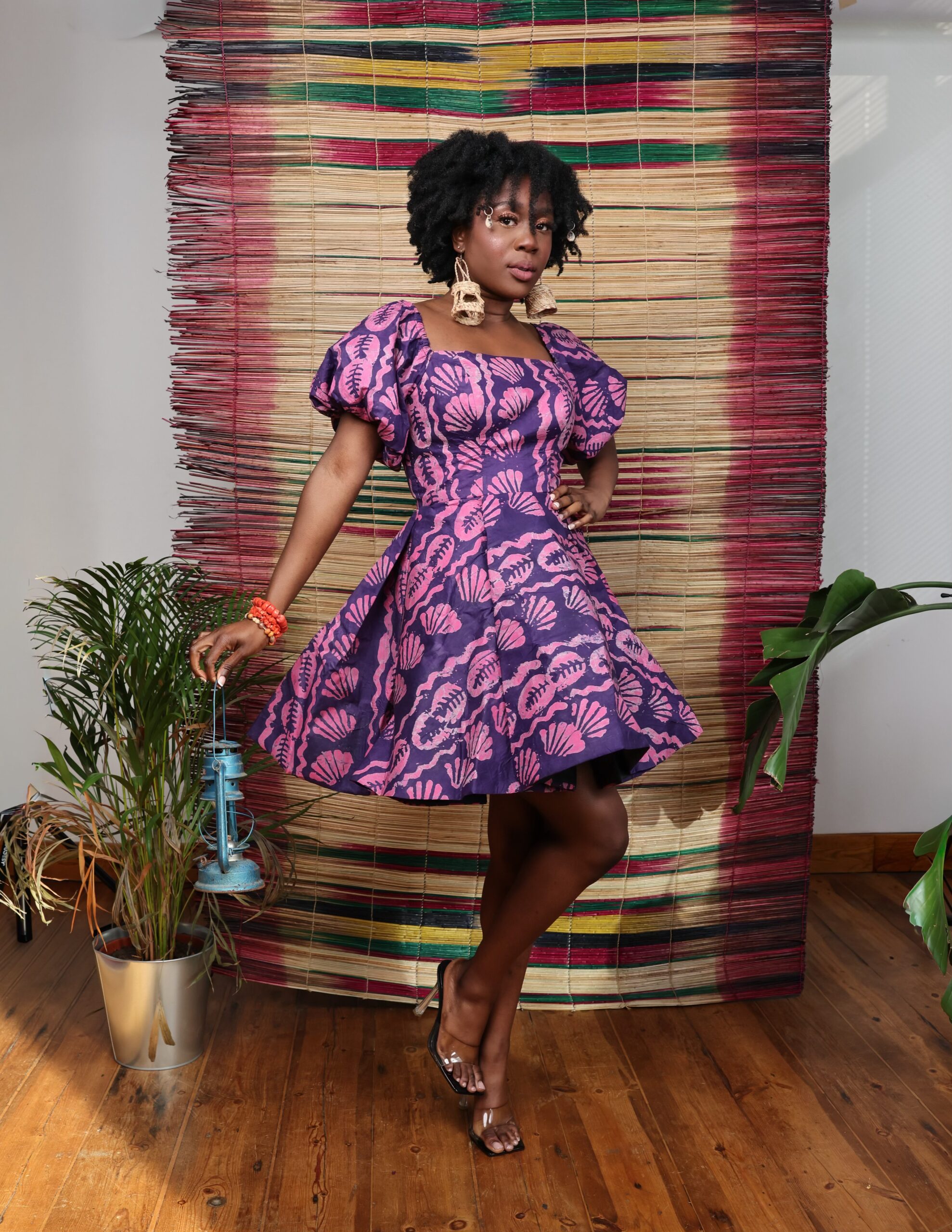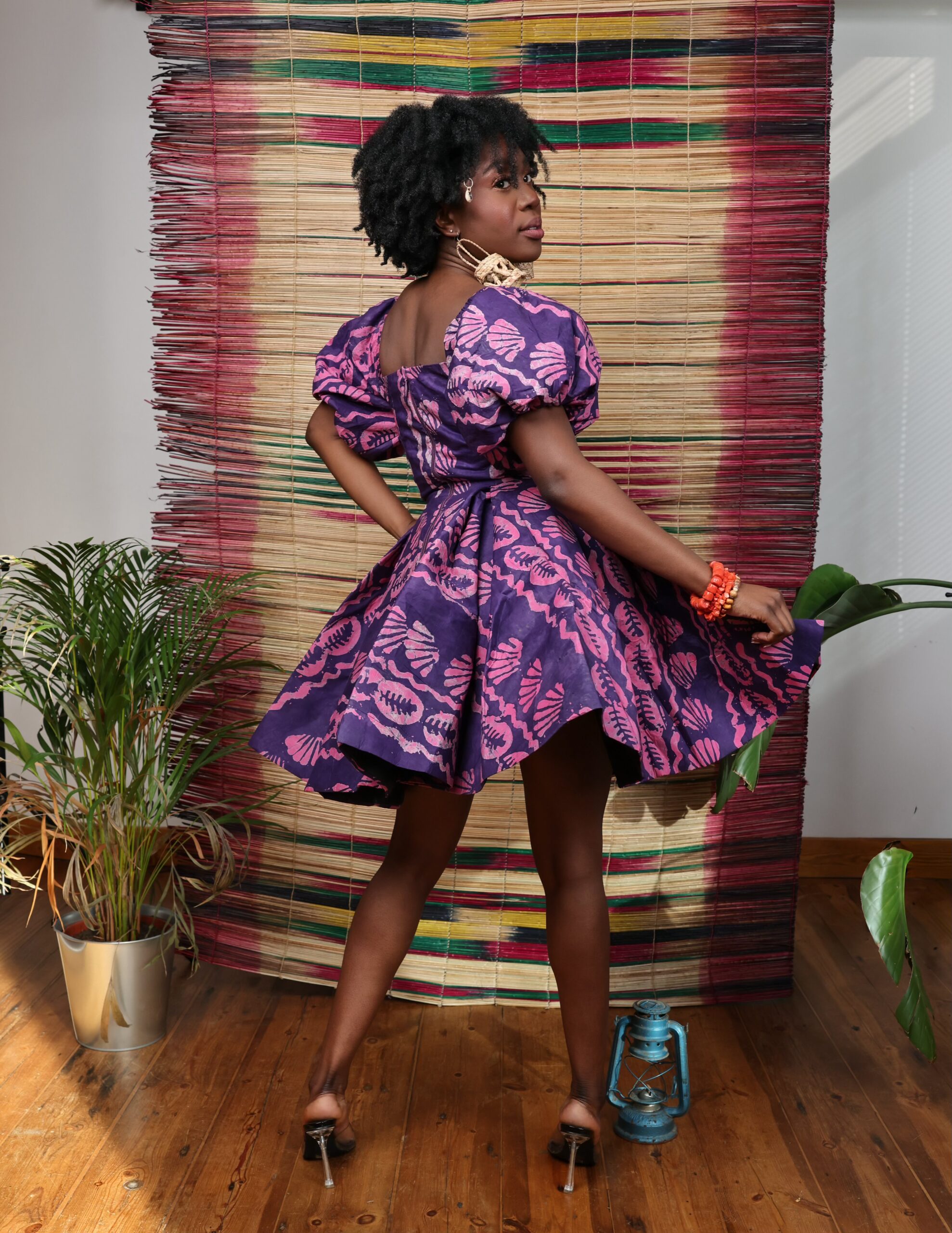 Made from hand-dyed Adire cotton fabric.