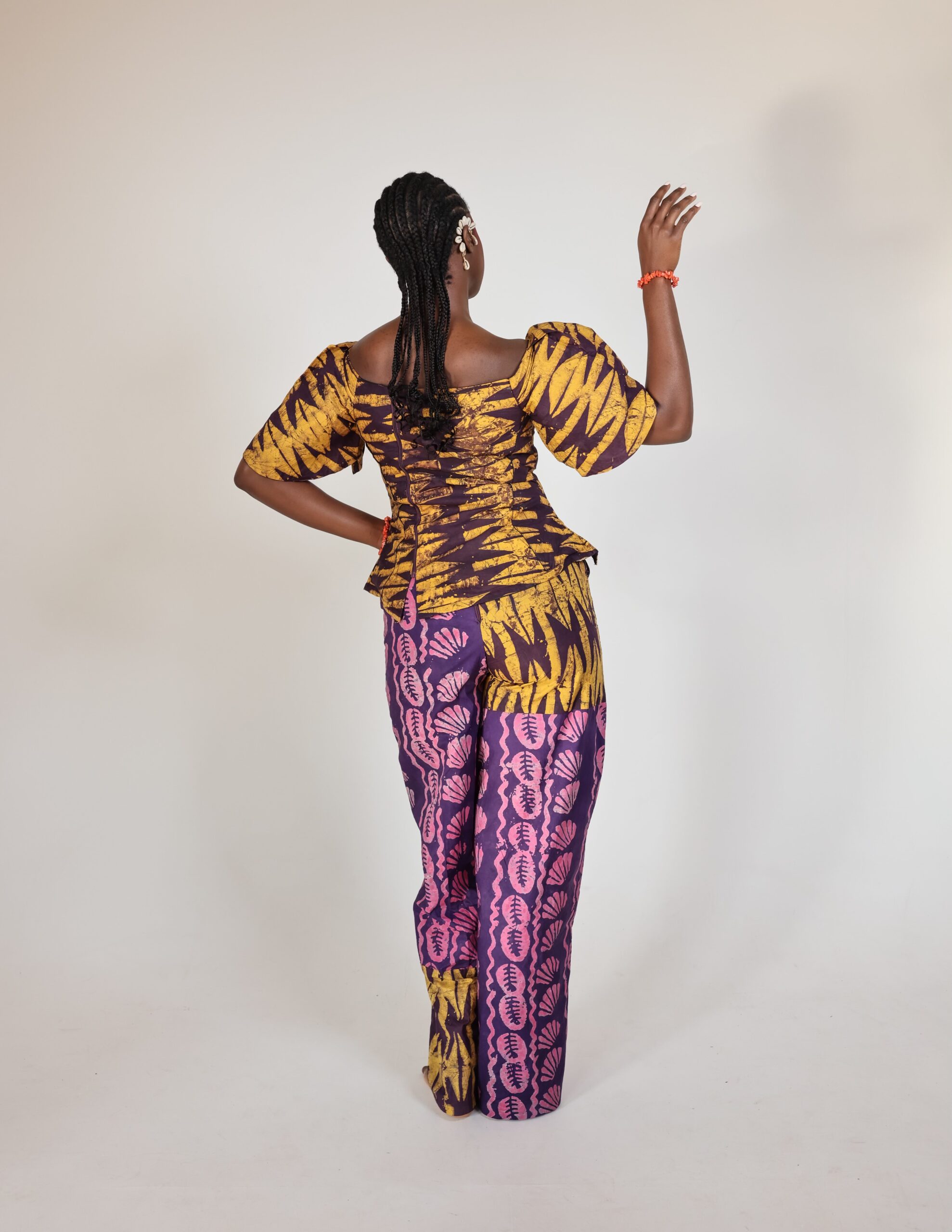 Paired with mix-and-match pants featuring a flattering waistband, side pockets, and a back zip.